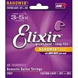 I have been on the journey for the perfect strings for my acoustic guitar. I tried these out for a couple of months. These strings sound good. They last forever. It took me a while to figure out that the guitar sounded like nanoweb strings. I know it sounds weird but when i put on any other brand the guitar took on whole different tones and the wood vibrated in my chest. Each time i would come back to Elixir the sound was flat and too bright. The high end was kind of screwy. I am a fingerstyle blues player (pre-war). I also play rock and folksy stuff. Some people swear by them. I just find EXP and ej16's to make the guitar sound better.Get more detail about Elixir Strings Acoustic Guitar Strings, 6-String, Custom Light NANOWEB Coating.